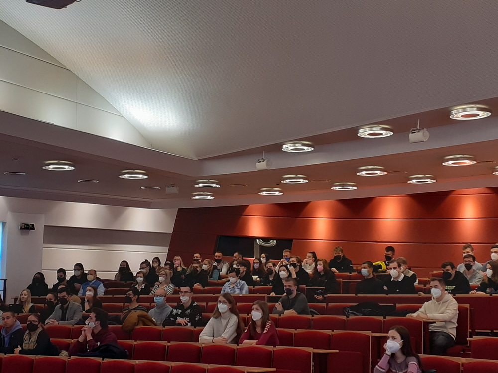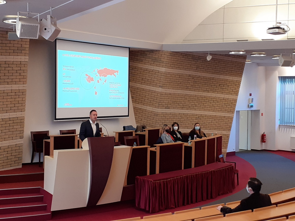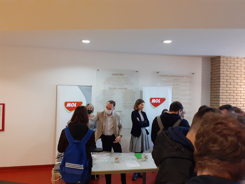 A MOL GBS Üzleti Szolgáltatások jelen lévő csapata részletezte, hogy milyen szerteágazó IT vagy éppen közgazdasági vonalon van lehetőség szakmai gyakorlatot végezni a vállalatnál. A szakmai gyakorlattal kapcsolatos további részleteket tudhattak meg a hallgatók az előadást követően a MOL standon, ahol további MOL-os szakértőkkel is találkozhattak, beszélgethettek.