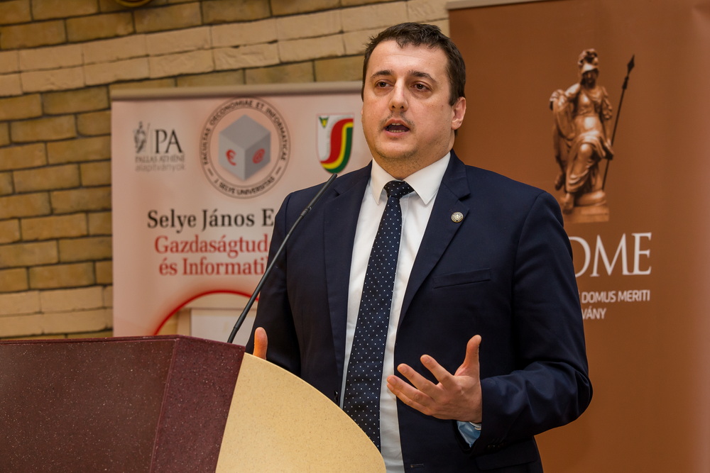 Köszöntőjében Csiba Peter, a SJE Gazdaságtudományi és Informatikai Karának dékánja megköszönte a Pallas Athéné Domus Meriti Alapítvány támogatását és biztatta hallgatóinkat a további tanulmányi, tudományos és közéleti téren való helytállásra.