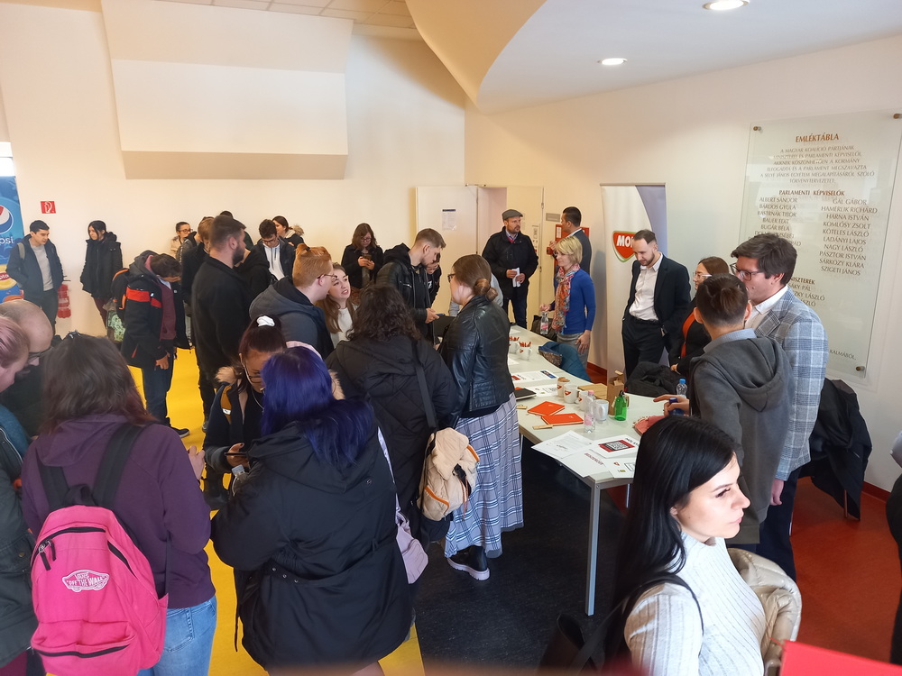 A MOL GBS Üzleti Szolgáltatások jelen lévő csapata részletezte, hogy milyen szerteágazó IT vagy éppen közgazdasági vonalon van lehetőség szakmai gyakorlatot végezni a vállalatnál. A szakmai gyakorlattal kapcsolatos további részleteket tudhattak meg a hallgatók az előadást követően a MOL standon, ahol további MOL-os szakértőkkel is találkozhattak, beszélgethettek.