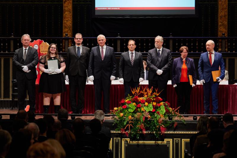 2023. november 24-én a Zeneakadémia dísztermében zajlott az OTDT kitüntésátadó ünnepi ülése. Az ülésen Takácsné György Katalin professzor asszony, az OTDT Közgazdaságtudományi Szakmai Bizottságának elnöke és Csiba Péter docens úr, az SJE GIK dékánja, a 36. OTDK Közgazdaságtudományi Szekciójának ügyvezető elnöke is köszönő oklevelet vehettek át a karunk szervezésében megvalósult 36. OTDK Közgazdaságtudományi Szekciójának lebonyolításában végzett munkájukért!