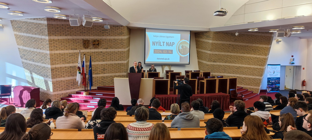 Szlovákia különböző pontjairól érkeztek érdeklődők a Selye János Egyetem Nyílt napjára 2024.február 14-én. A rektori és a polgármesteri köszöntők után a Gazdaságtudományi és Informatikai Kar mutatkozott be az idelátogatóknak. Először a kar dékánja Dr. habil. RNDr. Csiba Peter, PhD. üdvözölte a kar által kínált tanulmányi programok iránt érdeklődőket és hívta fel a figyelmüket arra, hogy a közgazdász, valamint az alkalmazott informatika területén végzett hallgatók iránt egyaránt nagy kereslet mutatkozik a munkaerőpiacon. A kar kínálta tanulmányi programokat PhDr. Kahler Korcsmáros Enikő, PhD., oktatásért felelős dékánhelyettes prezentálta, ill. a tanulmányi programok standjainál a kar kollégáinak és doktoranduszainak köszönhetően további hasznos információhoz juthattak az érdeklődők. A kar bemutatkozásának szerves részét képezte a gazdasági szimulációba való bepillantás, ill. a robotikai központ robotjait bemutatása is.