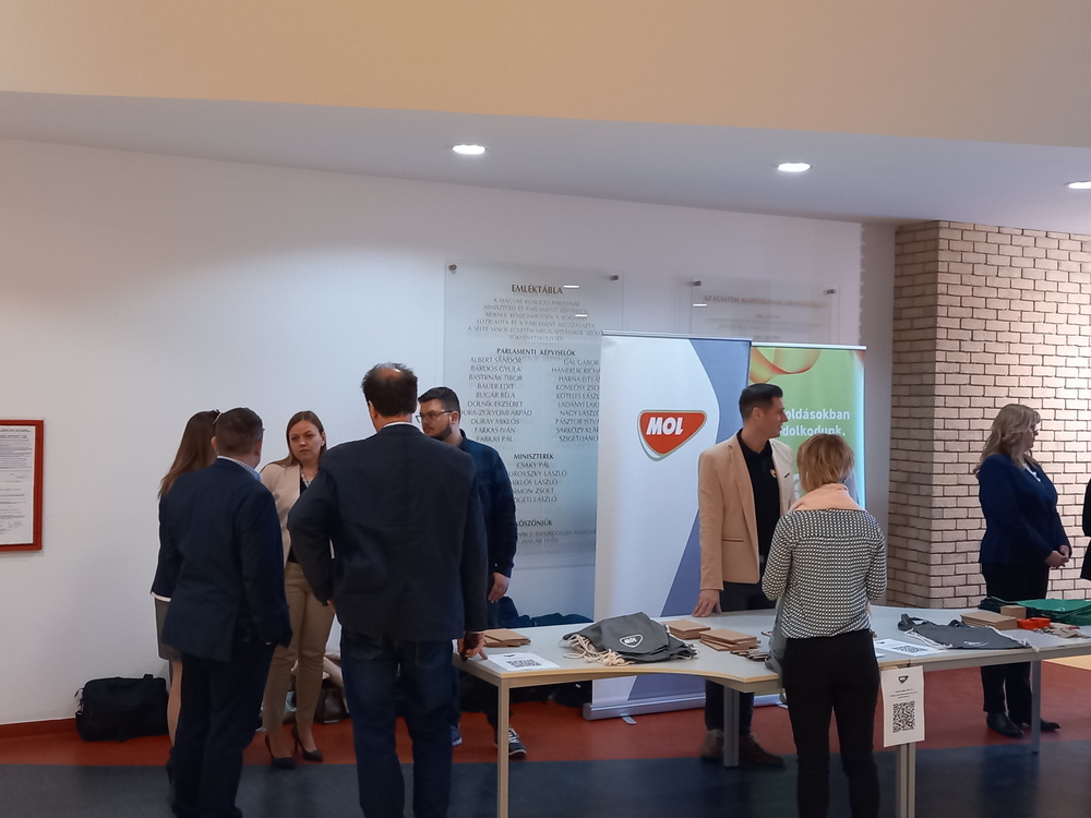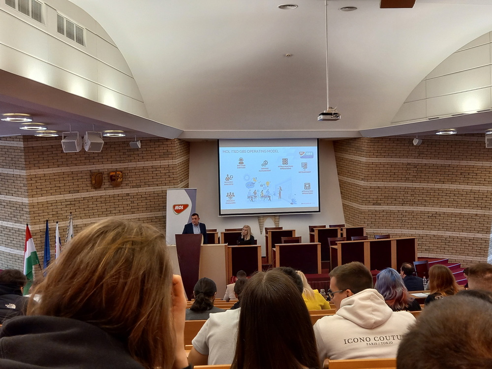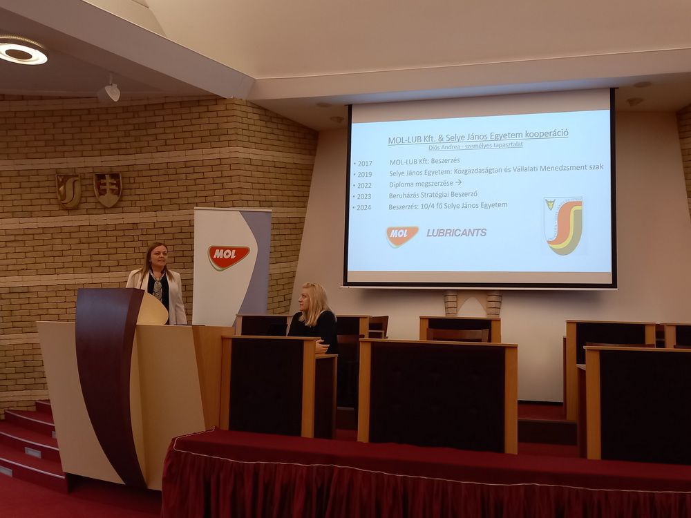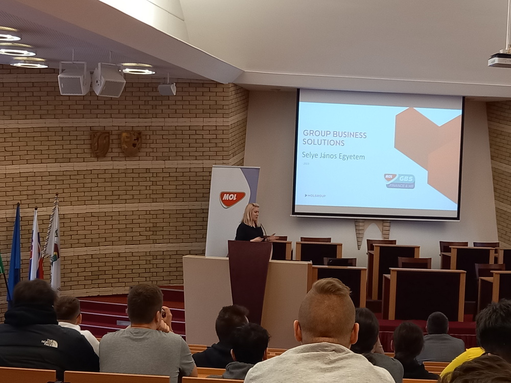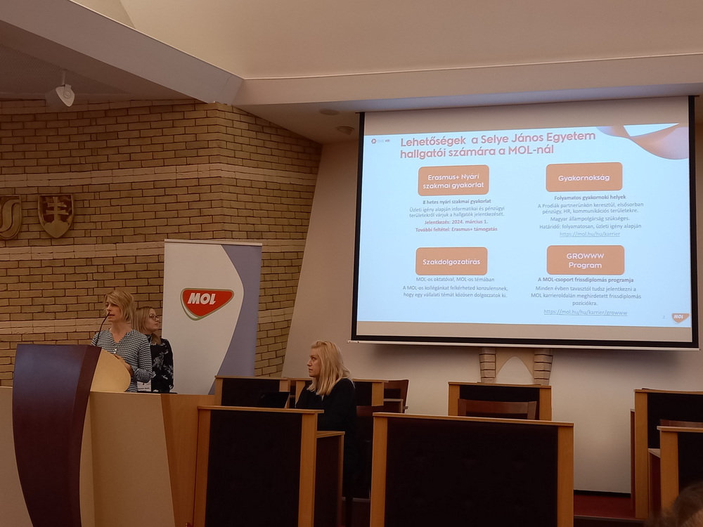 A MOL GBS Üzleti Szolgáltatások jelen lévő csapata részletezte, hogy milyen szerteágazó IT vagy éppen közgazdasági vonalon van lehetőség szakmai gyakorlatot végezni a vállalatnál. A SJE és a MOL közötti egyre szorosabb kapcsolat eredményeként a MOL Beszerzés hamarosan nyíló komáromi irodájába is keresnek olyan hallgatókat, akik tanulmányaikkal párhuzamosan ki szeretnék magukat próbálni egy nagyvállalati környezeteben. A szakmai gyakorlattal kapcsolatos további részleteket tudhattak meg a hallgatók az előadást követően a MOL standon, ahol további MOL-os szakértőkkel is találkozhattak, beszélgethettek.