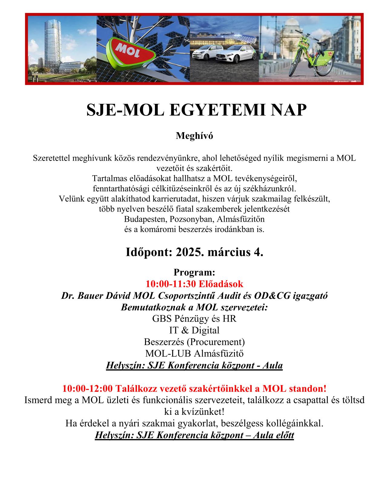 MEGHÍVÓ SJE-MOL EGYETEMI NAPRA – 2025.03.04.