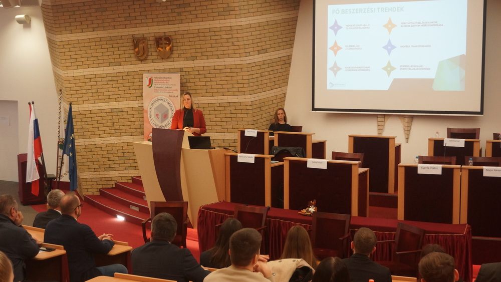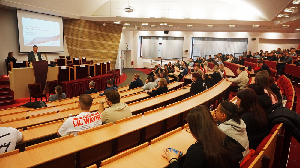 2024. november 11-én a „Jövő energiája” címmel fenntarthatósági fórumot tartott a partnervállalatunk a MOL és karunk, közös szervezésben a Tudomány és technika hete rendezvénysorozat keretében. A szakmai napot Dr. habil. RNDr. Csiba Péter, PhD., a SJE GIK dékánja és Kalocsányi Katalin, a MOL Beszerzési igazgatója nyitották meg. A szakmai nap nyitóelőadását Sverla Viktor (MOL-csoport Startégiai és Fenntarthatósági Igazgató) tartotta, ismertetve, miképp is látja a MOL-csoport a fenntarthatóság kérdéseit. Az előadást követően Kalocsányi Katalin (MOL-csoport Beszerzési igazgató), Tóth Kornél (MOL-csoport, Downstream Új- és Fenntartható Üzletágak Vezető) és Farkas Csaba (MOL-csoport, Megújuló Energiaforrások Csoport Vezető) részvételével panelbeszélgetésre került sor, amely során a jövő energiaforrásaival kapcsolatosan Halász Ambrus (MOL-Csoport, Társasági Kommunikáció Vezető) moderátor és a közönség kérdéseire válaszoltak a szakemberek a vállalati folyamatok szempontjából. A záróelőadást Major Alexandra (MOL-csoport, Fenntartható Beszerzési Szakértő) tartotta, amely során a beszerzési folyamat fenntarthatósági kérdéseit ismertette.