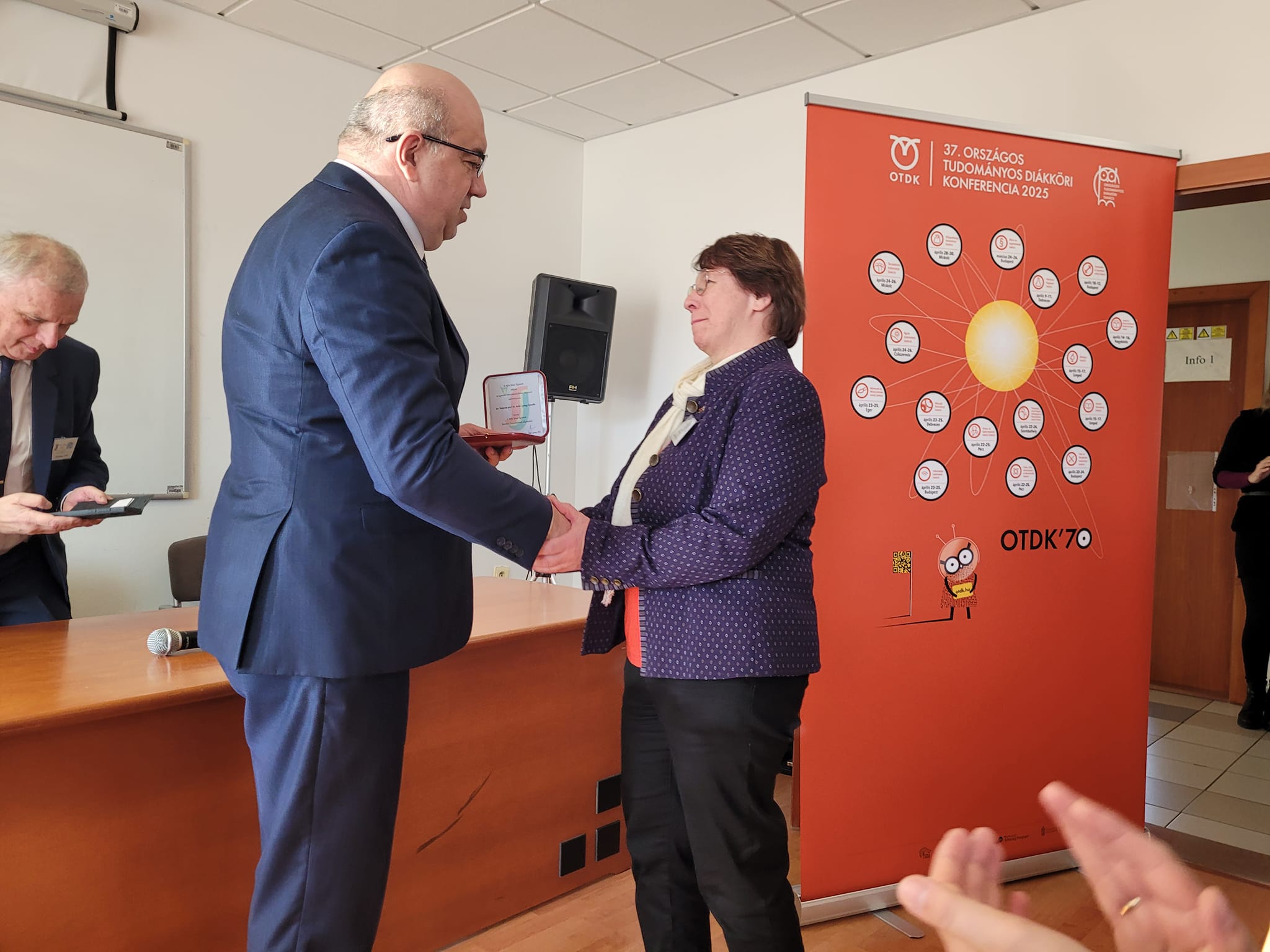 Karunk dékánjának javaslatára a fennállásának 20. évfordulóját ünneplő Selye János Egyetem rektorától a Selye János Egyetem emlékérmének bronz fokozatát vehette át a mai napon a XIX. FTDK megnyitó ünnepségén prof. Dr. Takácsné Dr. György Katalin, az OTDT Közgazdaságtudományi Szakmai Bizottságának elnöke. Köszönjük az ügyvezetés számára nyújtott segítséget a 36 OTDK Közgazdaságtudományi Szekciójának lebonyolításánál, mely intézményünk legnagyobb résztvevői létszámú rendezvénye volt az elmúlt két évtizedben!