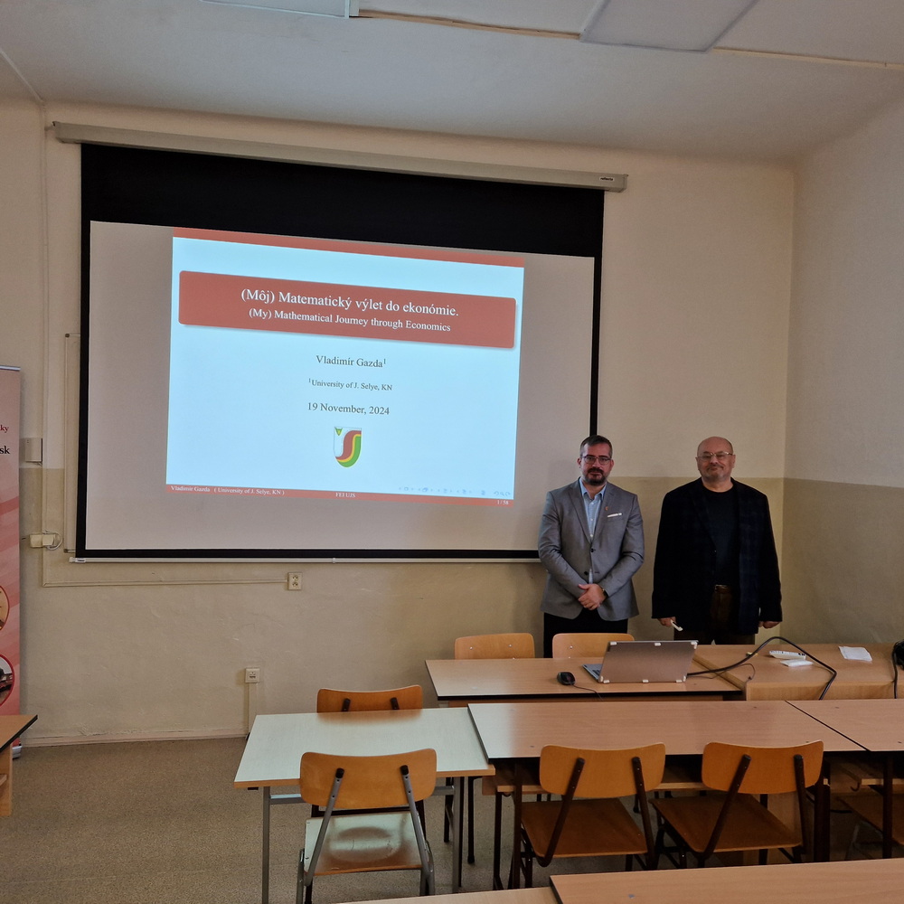 2024. november 19-én 9:40 kezdettel a GIK G210-es termében Prof. Ing. Gazda Vladimír, PhD. egyetemünk professzorának „(My) Matematical Journey Through Economics” c. előadását hallgathattuk meg, mely során a közönség betekintést nyerhetett a professzor úr munkásságába, annak kezdetétől, napjainkig kiemelt tekintettel a közgazdaságtudomány matematikai hátterére.