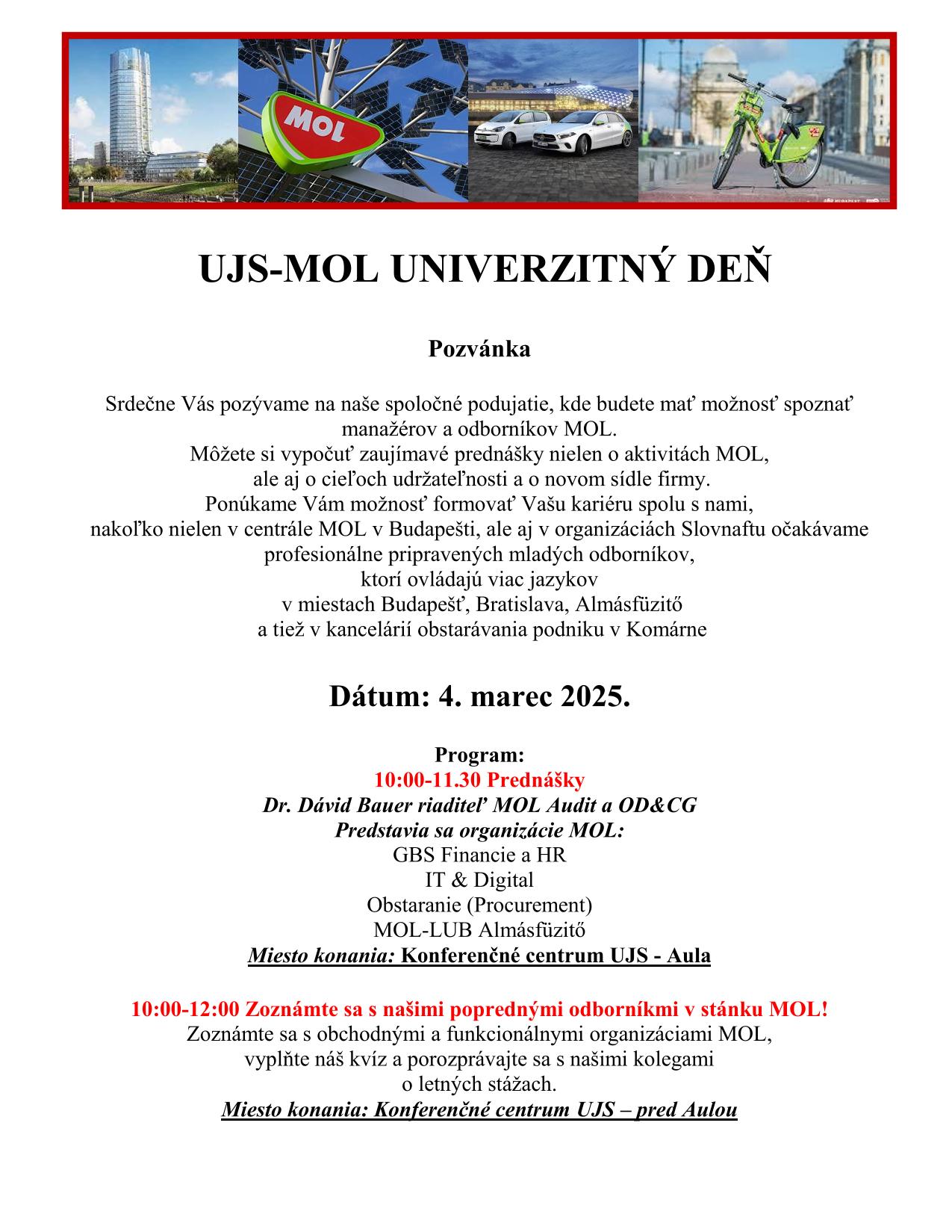 Pozvánka na UJS-MOL univerzitný deň - 04.03.2025