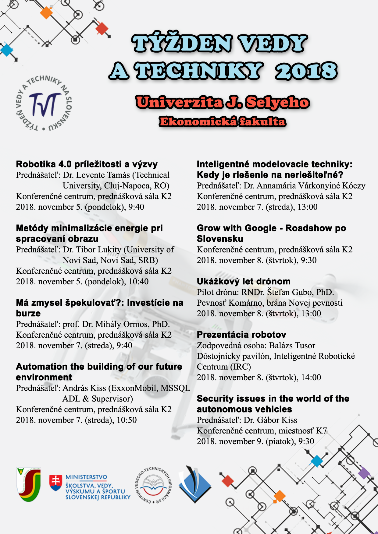 Ekonomická fakulta Univerzity J. Selyeho sa každoročne zapája svojimi sprievodnými podujatiami do Týždňa vedy a techniky. Tohtoročné sprievodné podujatia na EF Univerzite J. Selyeho sú nasledovné: